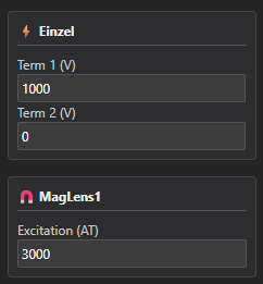 光学系に含まれる対象レンズを指定します。静電レンズ/磁界レンズどちらでも構いません。