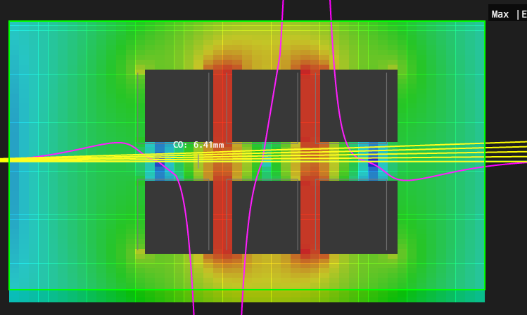 この設定では、このレンズの生成する場は、モデルのZ範囲に限定され、モデル外に漏れ出さないこととなります。 レンズの設計が完全に完了し、理想的な場でビーム軌道などを得たい場合に使用するモードです。